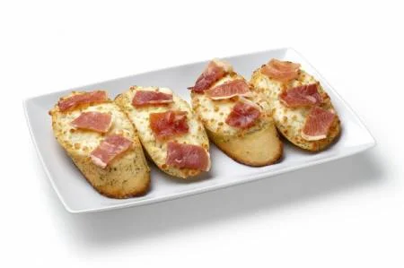 Krostinis con queso, de jamón, champiñon y bacón (6 unds). 4,40€ |