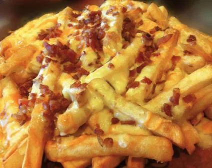 Patatas Cheese & Bacón Patatas fritas acompañadas de nuestra salsa de mezcla de quesos y un riquisimo bacón crujiente. 5,20€